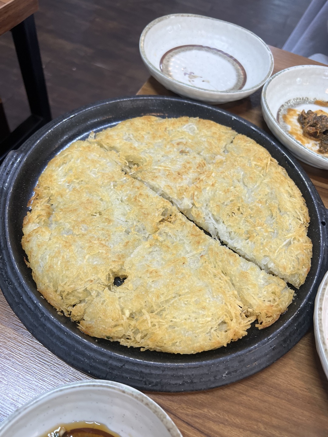 겉은 바삭하고 속은 쫄깃한 감자전이다.